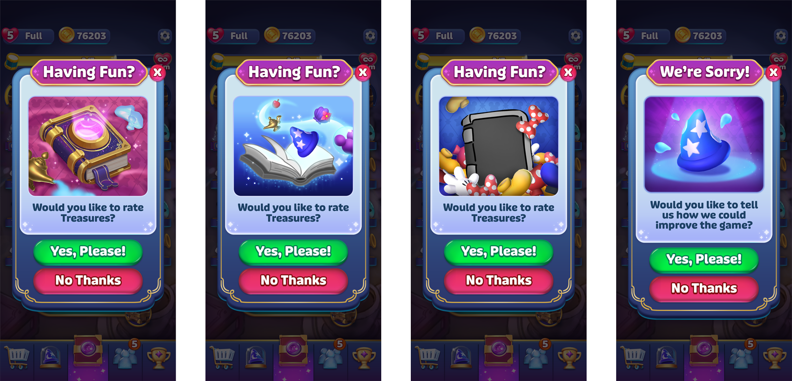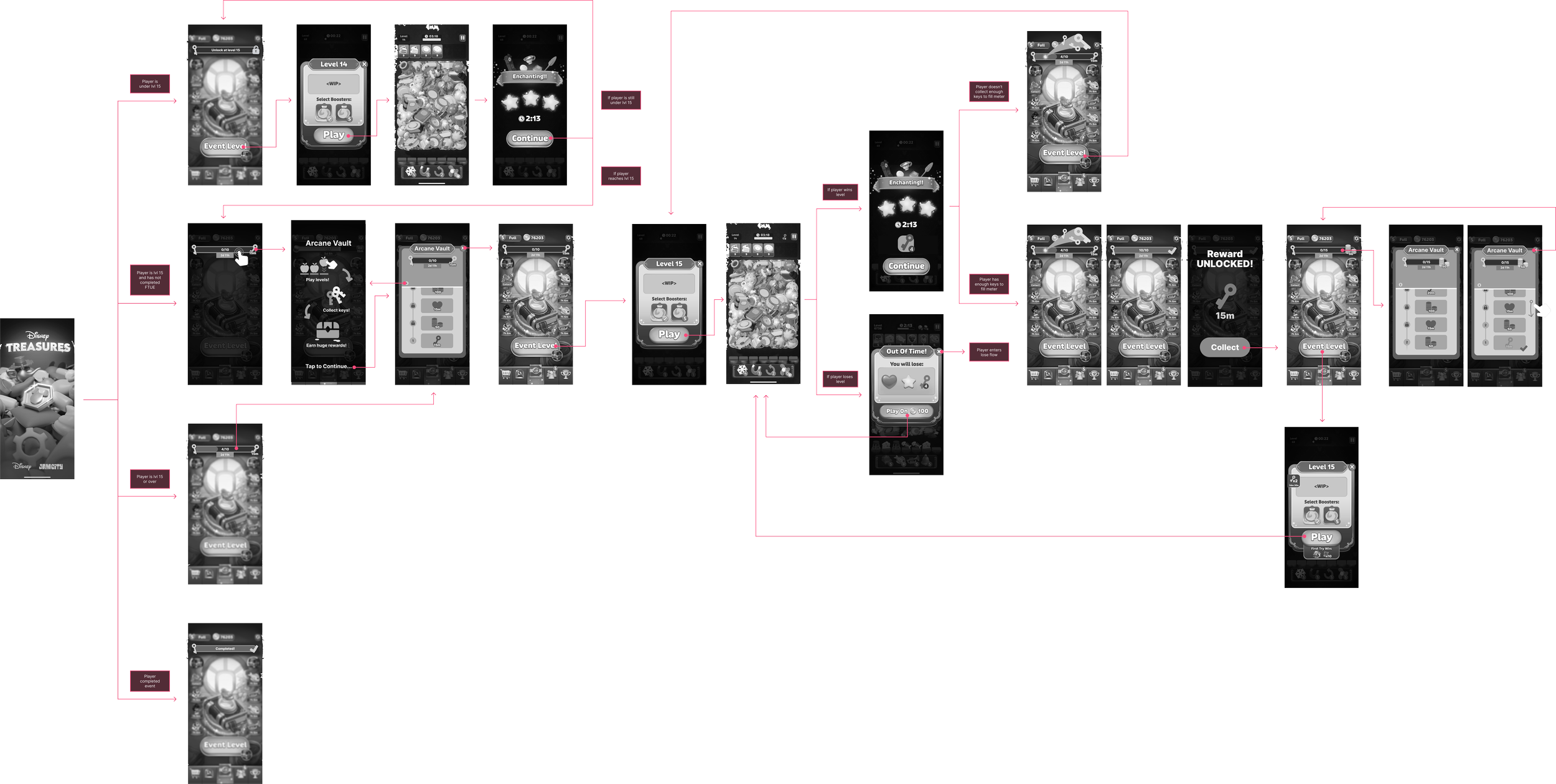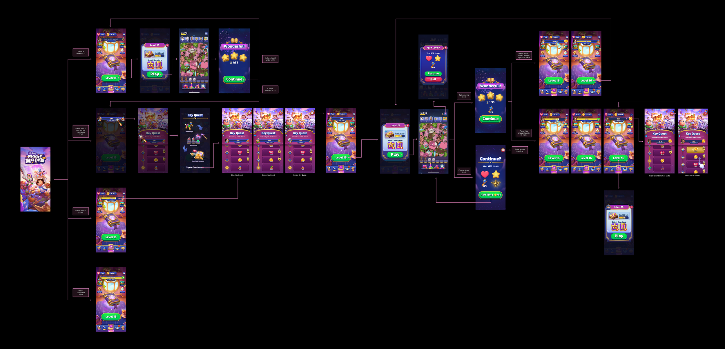 Working as a UI/UX Designer at Jam City, I created wireframes, UX flows and UI art for features during the development of the company’s new game, Disney Magic Match.